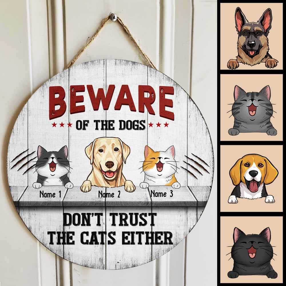 Beware Of The Dogs Custom Wooden Sign, Gifts For Pet Lovers, Don't Trust The Cats Either Warning Signs