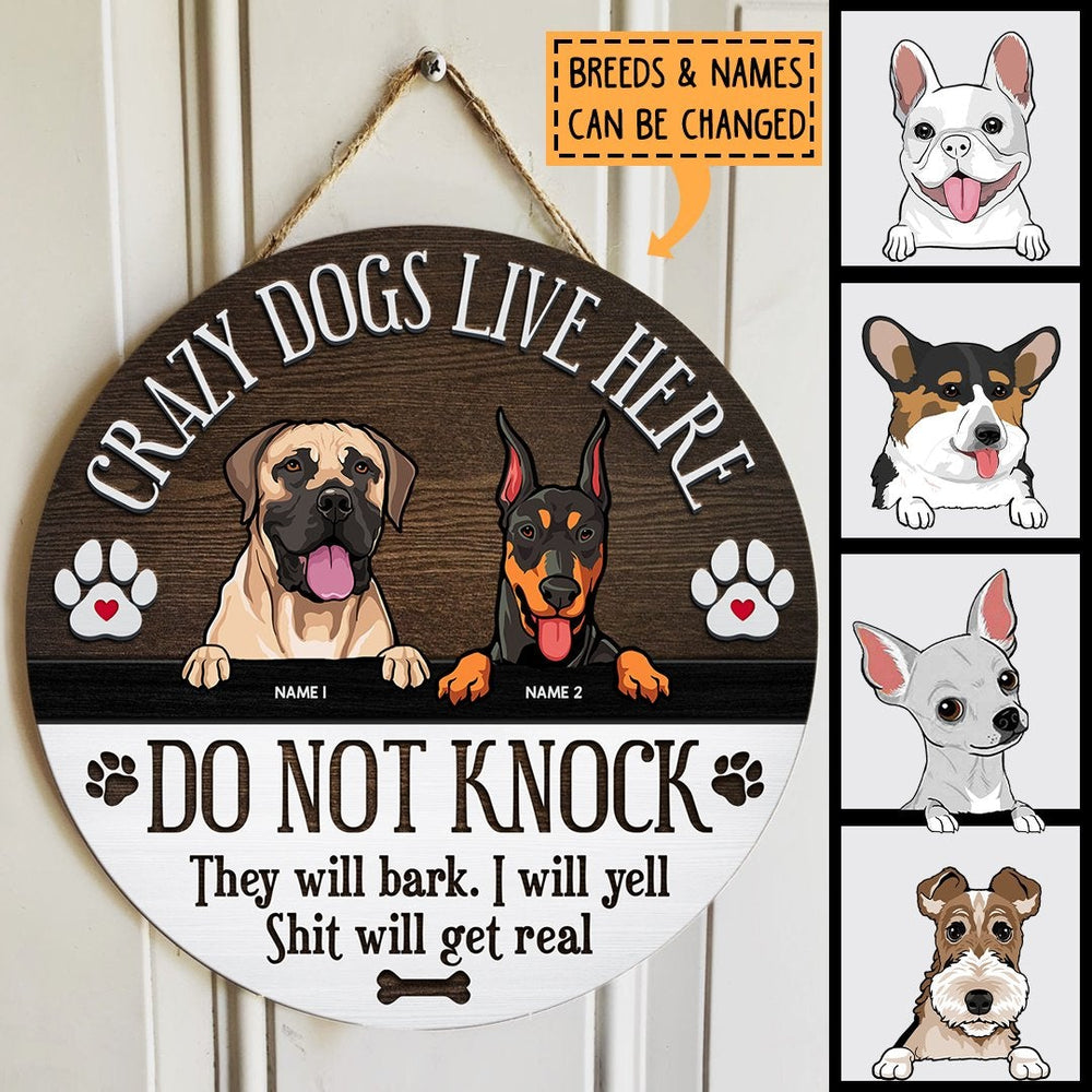 Crazy Dogs Live Here - Do Not Knock - They Will Bark, I Will Yell - Shit Will Get Real - Personalized Dog Door Sign