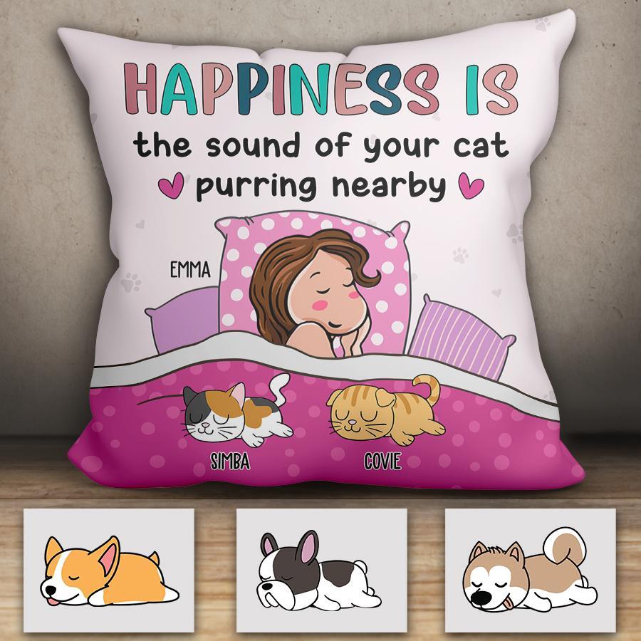 Happiness Is The Sound Of Your Cats Purring Nearby Personalized Pillow P-NB1708