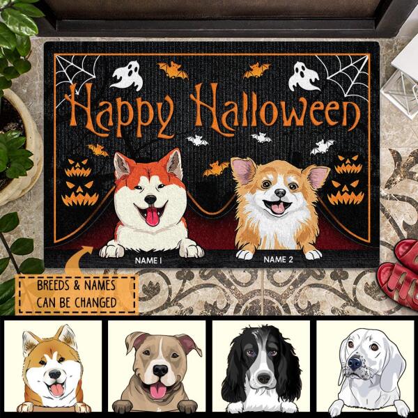 Happy Halloween - Peeking Dogs - Personalized Dog Halloween Doormat
