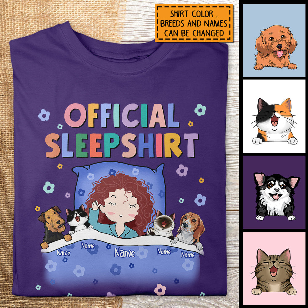 Official Sleep Shirt, Cute Girl With Her Dog & Cat, Dog & Cat Mom Gift, Personalized Dog & Cat Lover T-shirt