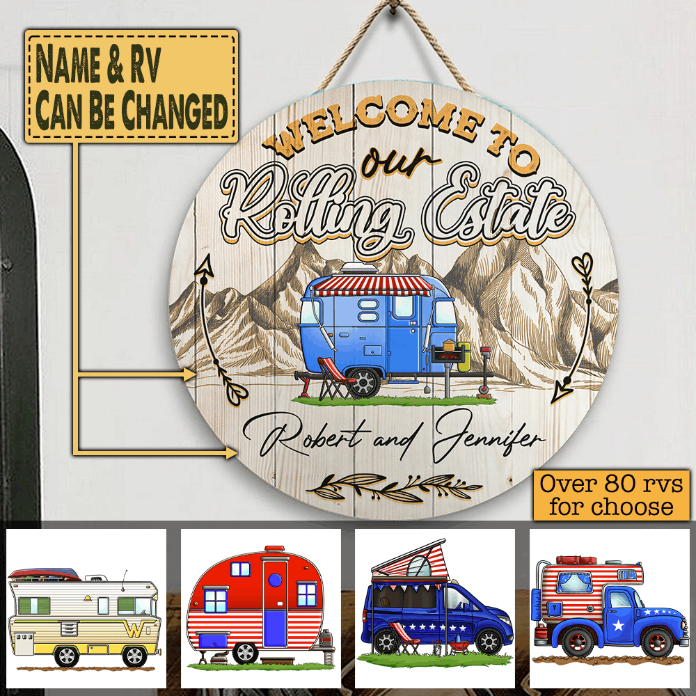 Welcome To Our Rolling Estate - Wooden Door Sign