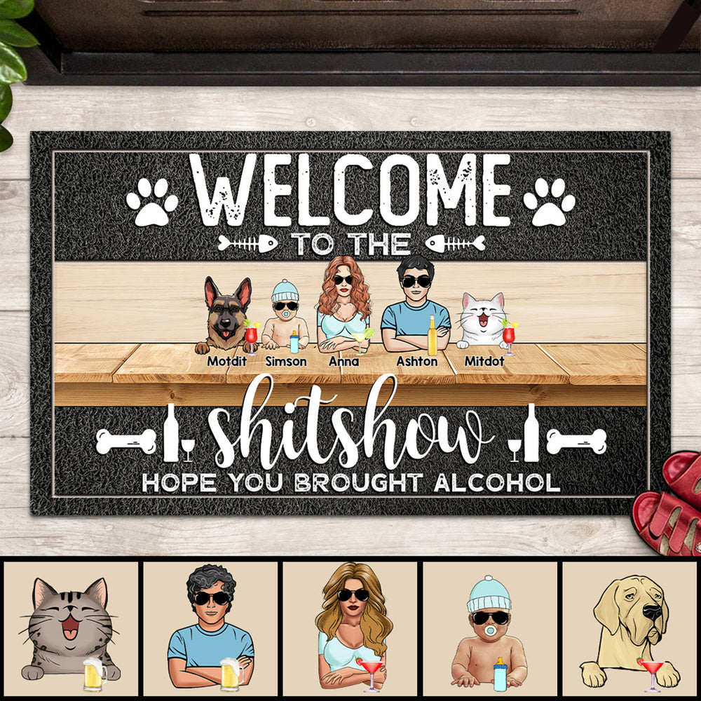Available Product: Welcome To The Shitshow Hope You Brought Alcohol, Cool Style Family, Personalized Dog & Cat Doormat--GM Doormat